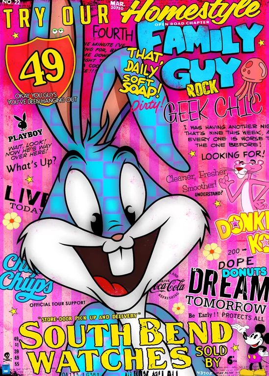 Meine Popart zeigt die Helden unserer Kindheit und Gegenwart: Mickey Mouse, Bugs Bunny, Batman, Wonder Woman, die Simpsons, Family Guy und viele mehr. Mit einem Augenzwinkern und viel Gefühl entstehen Werke, die nicht nur visuell begeistern, sondern auch Geschichten erzählen. Sie sind bunt, laut, frech – und doch tiefgründig. Denn echte Kunst lebt von Emotionen. Erlebe die farbenfrohe Welt von mr.grossart. Knallbunte Visionen ikonischer Comic Kunst die einen bleibenden Eindruck hinterlässt. Deine Kunst - Deine Moment!